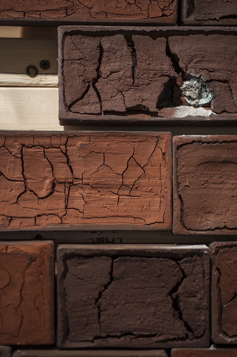 The Weight of Glory detail Published May 7, 2017 at 798 × 1200 in The Weight of Glory ← Previous Next → Detail of Brick Tower from the installation. Bricks were constructed using soil from my hometown in Frog Jump, TN